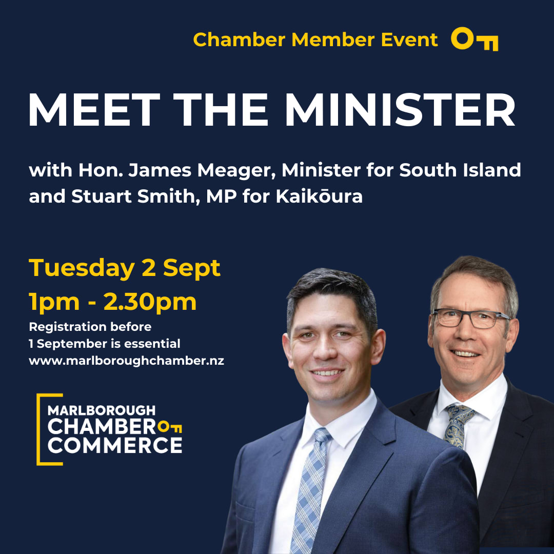 The Marlborough Chamber of Commerce invite you to a member only event to hear from Hon. James Meager, accompanied by our local MP Stuart Smith. Minister Meager is the Minister for the South Island, Minister for Youth, Minister for Hunting and Fishing and Associate Minister of Transport.